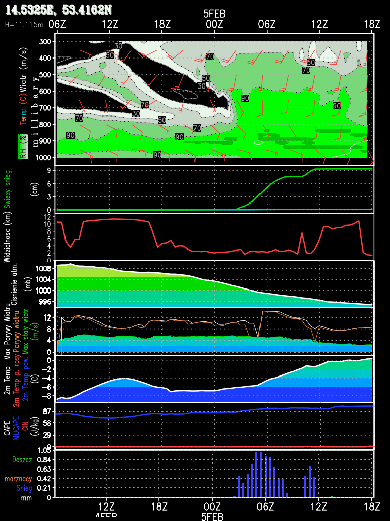 09.00 - Polnoc Polski Meteogramy: Chwaszczyno, Rebiechowo, Jelitkowo, Gdynia, Chalupy, Rewa,